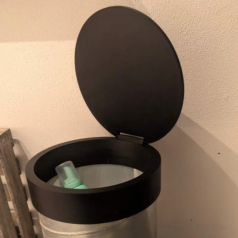 Im Alltag wirkt der Mülleimer überraschend hochwertig: stabil durch das Metall, warm durch die matten Druckteile, visuell ruhig, weil nichts Überflüssiges sichtbar bleibt. Ein pragmatisches, kleines Projekt – entstanden aus Neugier und mit dem Wunsch, etwas Schlichtes besser zu machen.