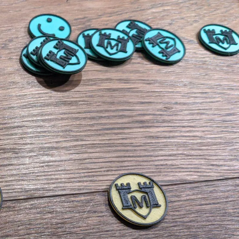 Design-wise, the tokens are deliberately simple. They consist of two printed parts – front and back – that are connected together. This two-part nature gives them weight and stability and ensures that they feel valuable and balanced in everyday life. The connection is made permanently with UHU-Allplast, without visible fastening elements.