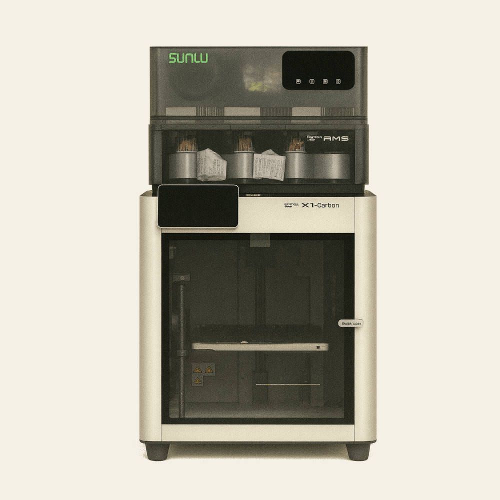 Bemerkenswert ist die Einfachheit der Konstruktion. Alle Bauteile sind reduziert gestaltet und erfüllen jeweils nur einen Zweck: halten, führen, decken, schützen. Der Deckel ist optional und wird über einen kleinen, gedruckten Halter und eine gekürzte 3-mm-Gewindestange geführt. Er öffnet leise und bleibt in Position, ohne Mechanik, ohne Feder, nur durch die Form.