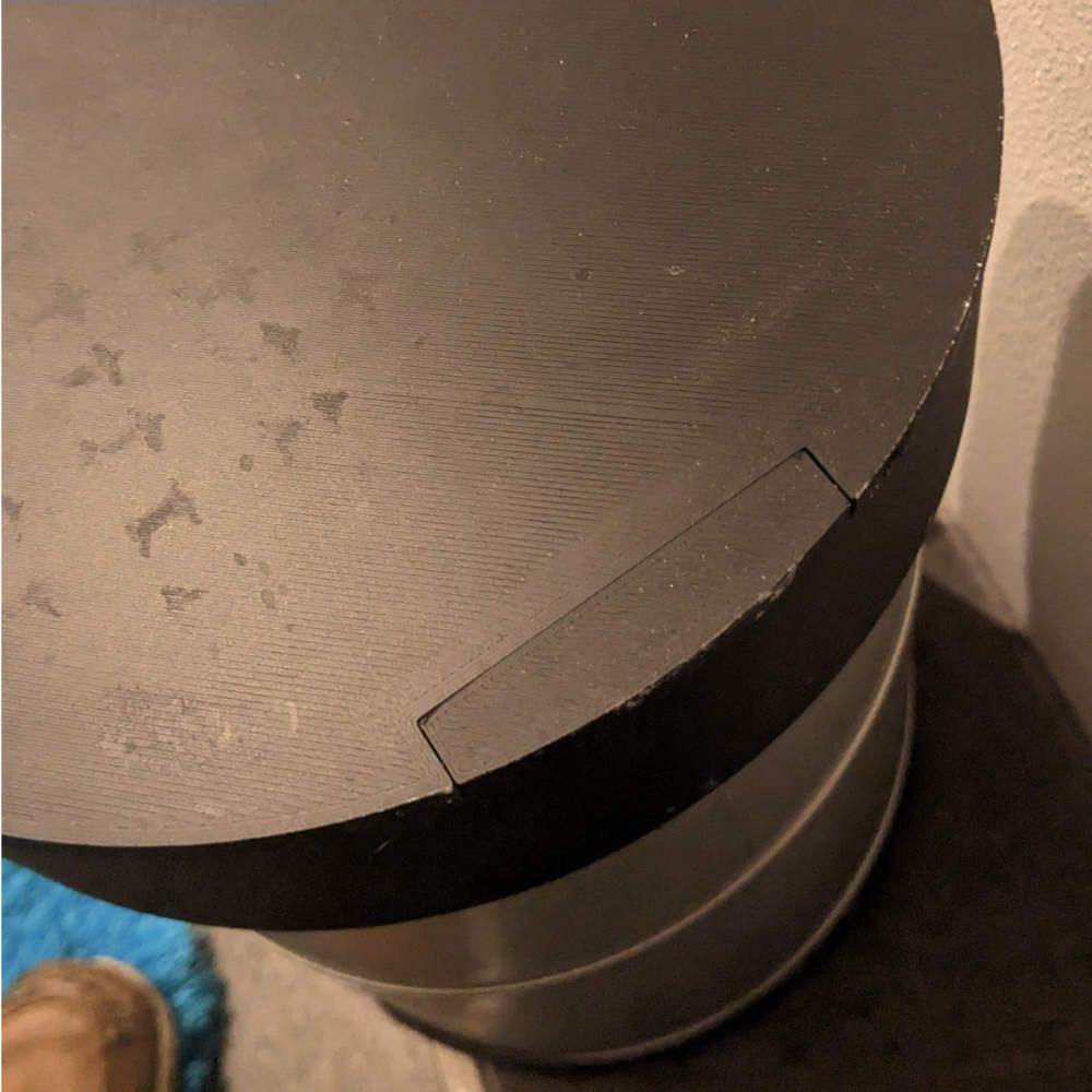 Im Alltag wirkt der Mülleimer überraschend hochwertig: stabil durch das Metall, warm durch die matten Druckteile, visuell ruhig, weil nichts Überflüssiges sichtbar bleibt. Ein pragmatisches, kleines Projekt – entstanden aus Neugier und mit dem Wunsch, etwas Schlichtes besser zu machen.