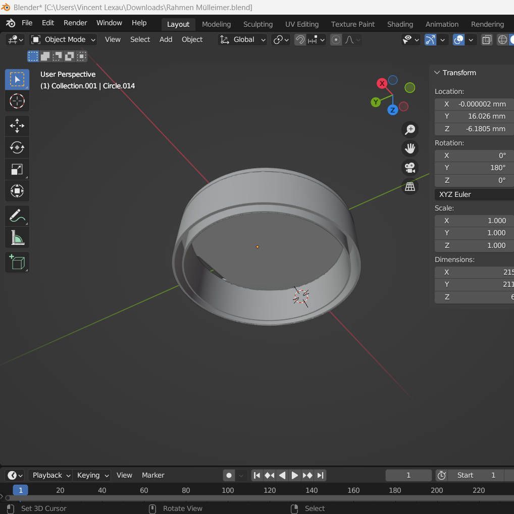 Dieser Mülleimer ist ein kleines Experiment mit industriellem Material und präziser 3D-Fertigung. Das Grundelement ist ein 200-mm-Wickelfalzrohr, ein Bauteil, das normalerweise in Lüftungsanlagen verschwindet und hier bewusst sichtbar bleibt. Die gedruckten Rahmen greifen diese Schlichtheit auf: Sie fassen das Metall, schützen die Kanten und geben dem Objekt seine ruhige, klare Form.